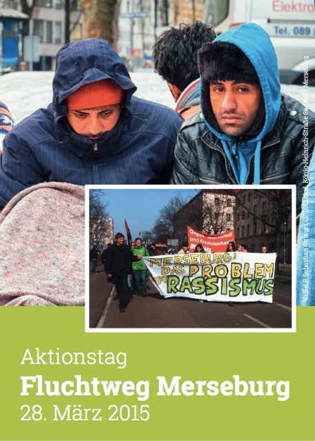 Am Samstag, dem 28. März findet der (offizielle) Abschluss der Merseburger Veranstaltungen im Rahmen der Internationalen Wochen gegen Rassismus statt. Mit dem Aktionstag „Fluchtweg Merseburg", wollen wir zeigen, dass Merseburg eine offene und vielfältige Stadt sein will und die Stadt und ihre BürgerInnen Geflüchtete willkommen heißen. Wir wollen über Fluchtgründe und Flucht weltweit informieren. Wir wollen gemeinsam mit Geflüchteten die Lebensrealitäten von ihnen in Europa und Deutschland öffentlich machen. Geflüchtete sollen ihre Geschichte erzählen können. Gemeinsam mit vielen KooperationspartnerInnen wollen wir uns dem Thema im Rahmen eines Parcours mit verschiedenen Stationen vom Markt über Entenplan und Gotthardstraße bis zur Kliaplatte nähern.